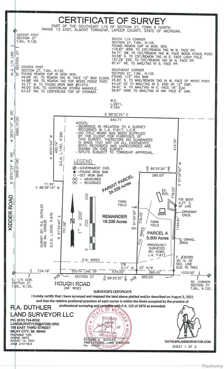 Ready for your opportunity to own 19+ acres in Almont? Plenty of room to build a home and plant your crops. Well and septic are needed. 2 splits are available. Gas on road.