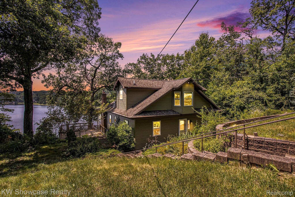 Nestled on a serene hill overlooking the sparkling waters of Clear Lake, this stunning cottage-style lakefront home is a true gem. With 4 spacious bedrooms and 2.5 elegantly designed baths, it offers both comfort and luxury. The home boasts a walkout basement, complete with a wet bar for ultimate entertainment, and three expansive tiers of decks that wrap around the entire home, perfect for enjoying the breathtaking views of the all-sports lake. ALSO, Chip and Joanna literally just left the building featuring a freshly painted first and second level, along with top-of-the-line luxury vinyl flooring to match. The great room, with its inviting gas fireplace, opens to the kitchen and dining area, creating an ideal space for family gatherings or quiet nights spent watching the water shimmer just beyond. Upstairs, the expansive primary suite is a true retreat, complete with a private bath that offers tranquility and privacy. The vintage ice shed on the property adds a unique touch, ready to be used for storage or as a charming feature that pays homage to the home’s history. The 3-car detached garage provides ample space for vehicles and toys, while the property is one that shares a 30-acre plot of land that offers exclusive access for the neighborhood to hike, roam, and enjoy nature in its purest form. This land will never be developed, preserving its peaceful, wildlife-rich setting for generations to come. With newer HVAC and great bones, this home is ready for you to move in and start making memories. The neighbors are just as wonderful. Located in a highly sought-after area of Battle Creek, this retreat offers a unique opportunity to experience lakeside living in a setting that feels like a secret paradise. Come see why this area is so beloved — it’s a retreat like no other.