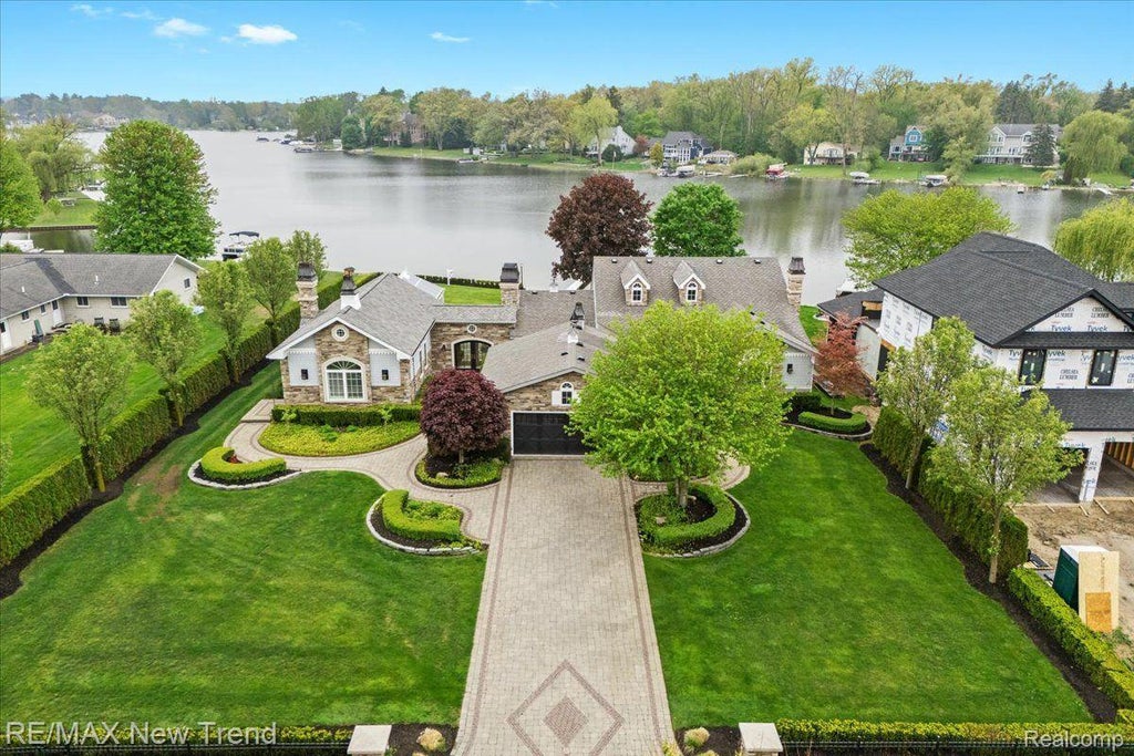 Welcome to your dream lakefront escape! This one of a kind custom home offers 115 feet of prime water frontage on beautiful, private, all sports Commerce Lake, complete with a stone seawall and your own private sandy beach. Step inside to discover luxury at every turn from fresh designer paint to rich custom finishings and Andersen windows throughout. The heart of the home features a gorgeous indoor heated pool with heated floors, an adjoining gathering area, changing room, full bath, and dedicated laundry space perfect for entertaining year round. The beautifully appointed kitchen is a chef’s dream, featuring stainless steel appliances, double ovens, a deep sink, heated floors, and ample space for cooking and gathering. Just off the kitchen, enjoy the covered rear patio with a built in gas BBQ ideal for lakeside dining and relaxing with friends and family. Inside, cozy up by the gas fireplace or take in the breathtaking landscaping, complete with your own dock. The luxurious master suite offers radiant heated marble floors, a spa like steam shower, dual vanities, and double walk in closets. Upstairs, you’ll find additional guest bedrooms and a full bath, while the fourth bedroom is currently set up as a home office perfect for remote work or a quiet retreat. The home also features two completely finished, painted, heated, and lighted crawl spaces offering clean and usable storage or utility space. A heated garage rounds out the long list of premium amenities in this truly unique waterfront home. Don’t miss the chance to own a true lakefront oasis where comfort, elegance, and recreation meet!