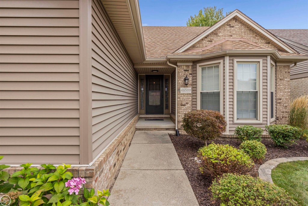 OPEN 10/18/25 1:00-3:00. Beautiful brick detached condo. Low HOA fee. New carpet and freshly painted (8/2025) with hardwood floors. Open concept kitchen w/oak cabinets & granite counter tops. includes all appliances - plus the washer & dryer. Large dining area with door wall leading to a stamped concrete patio on a 100x100 sized lot, perfect for outdoor activities. Great room with cathedral ceiling, gas fireplace. The spacious primary suite features a private full bath (with a walk in shower) and generous double closets.. First floor laundry. Snow removal, trash pick up and common area maintenance (including lawn care). cluded.Home is super clean and ready for its next owner.