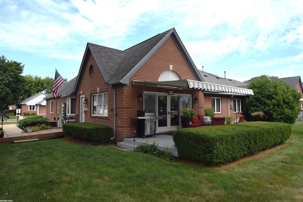 Beautiful END UNIT BRICK RANCH condo w/ 2 bedrooms, 2 full baths, & one-car attached garage. Short walk to the Algonac boardwalk along the Saint Clair River, w/ limited view of the water from private deck. Close to downtown shops, restaurants, public boat launch & all amenities. Bright, open floor plan w/ 4-panel sliding door wall leading to deck. Primary bedroom suite w/ private bath & large walk-in closet. Skylight in main bath. Recent updates in 2022/2023 include Marygrove retractable awning, composite deck, wood side deck w/ ramp, Mohawk wood laminate flooring & bedroom carpet, and much more! Call for complete list. New hot water heater July 2025. Super clean and ready to move in! All appliances included. NO RENTALS ALLOWED in order to maintain value, and to maintain the peaceful atmosphere of this small community.