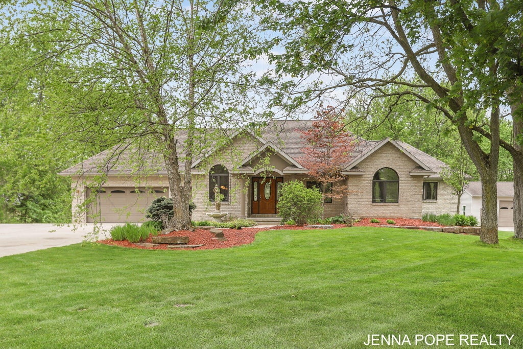 Discover this stunning waterfront property on 6.5 acres of wooded land with an impressive 225 feet of frontage along Grand River. Located just 20 minutes from downtown Grand Rapids, this property offers the perfect blend of convenience and peaceful living. As you step inside, you'll be welcomed by a bright and airy interior where open living areas effortlessly transition between formal and casual spaces. There is abundant natural light pouring in creating a bright and inviting atmosphere.Highlighting brand new quartz countertops and stainless steel appliances in the kitchen. The living room features a beautiful floor-to-ceiling stone fireplace and expansive wall-to-wall windows ideal for observing the abundant wildlife. A glass door leads to an additional family room, idealfor entertaining. The oversized owner's suite has a cozy sitting area and a spacious closet featuring custom-built-ins with a luxurious en suite bathroom. Step outside to your own personal paradise! The heated pool is only 2 years old and comes complete with fountains and an automatic cover, perfect for sunny afternoons. Imagine hosting evenings around the fire pit under the stars, creating memories of a lifetime. The property also features two outbuildings with full climate control, equipped with new mini-splits, insulation, drywall, and newer roofsideal for any hobbies and storage. This property has been meticulously designed and maintained for all the seasons that Michigan has to offer. Plus, a whole-home generator ensures peace of mind at all times. Don't miss this rare opportunity to own a slice of wooded waterfront paradise where comfort meets style. Schedule your tour today. Your dream home is waiting!