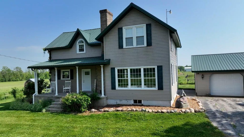 Don't miss this incredible opportunity to own a beautifully updated 3 bed, 2 bath farmhouse on 53.57 acres of prime land! Set on a paved road, this property features two steel pole barns, a two-stall garage, and a perfect blend of hay fields, open pasture, and mature woods. The home has been fully renovated with modern updates and a spacious, functional layout. A spring-fed stream winds through the property, leading to a stocked fishing pond--ideal for outdoor enjoyment. Excellent hunting, farming potential, and space to create the lifestyle you've been dreaming of.